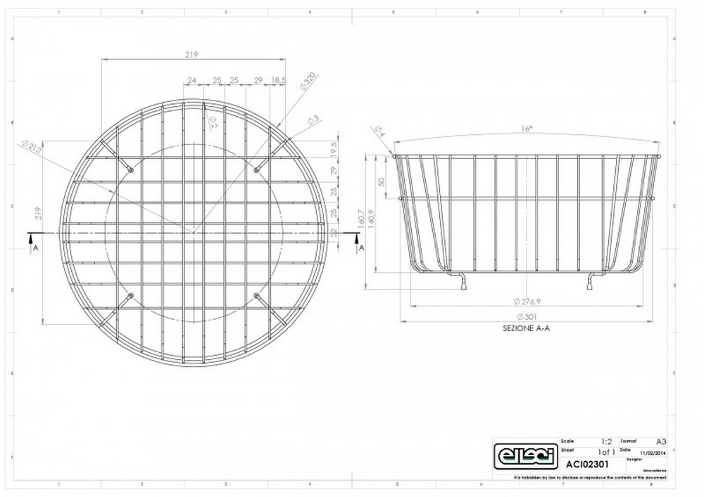 Nerezový koš ELLECI ACI02301 Vhodné pro dřezy FOX Round, EASY Round 600, SKY Round 510, SKY Round 435 Průměr: 320 mm