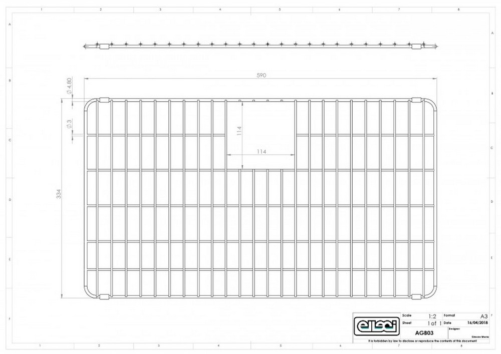 Nerezový rošt ELLECI AGB01303 Rozměr: 590 x 334 mm Vhodné pro: QUADRA 130, ZEN 130, KARISMA 120