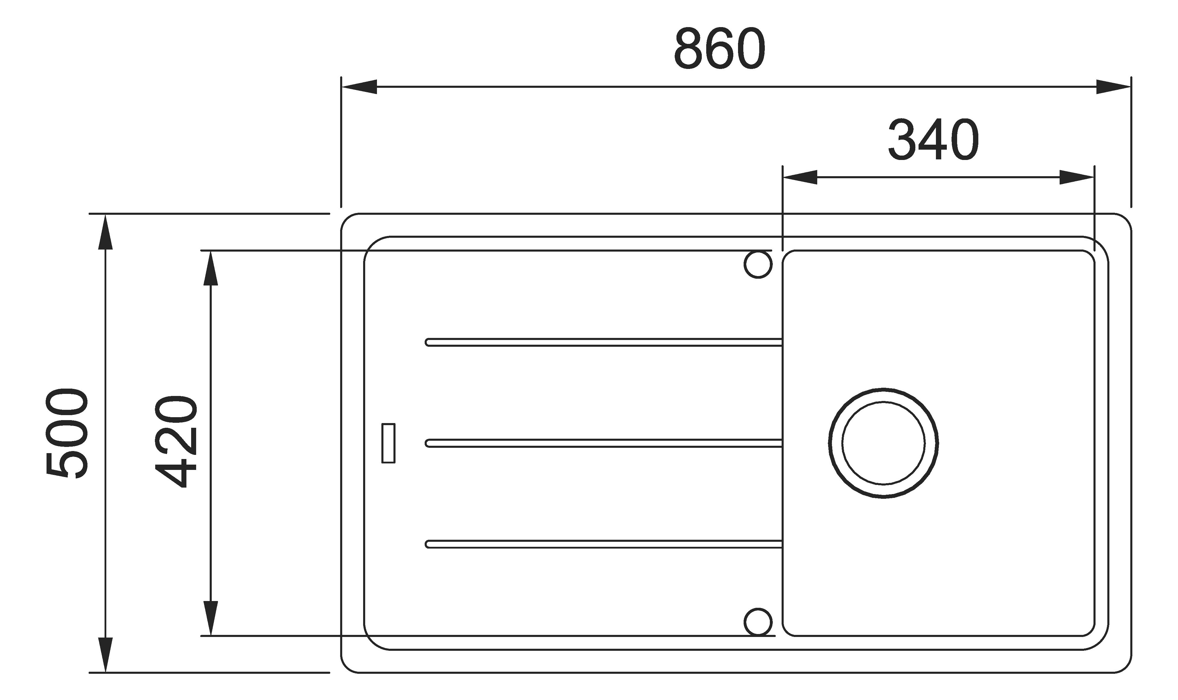 - Rozměr dřezu: 860 x 500 mm