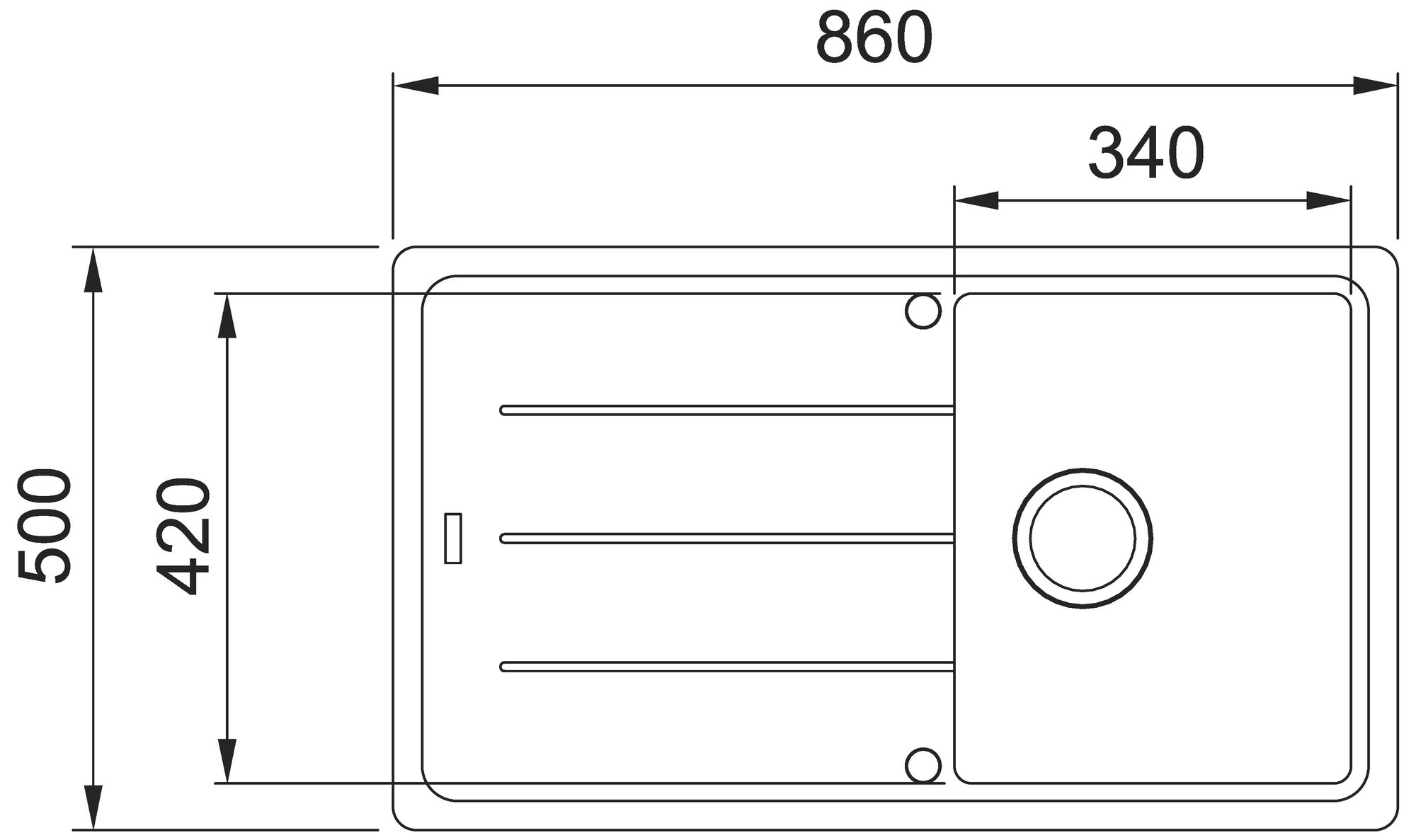 - Rozměr dřezu: 860 x 500 mm