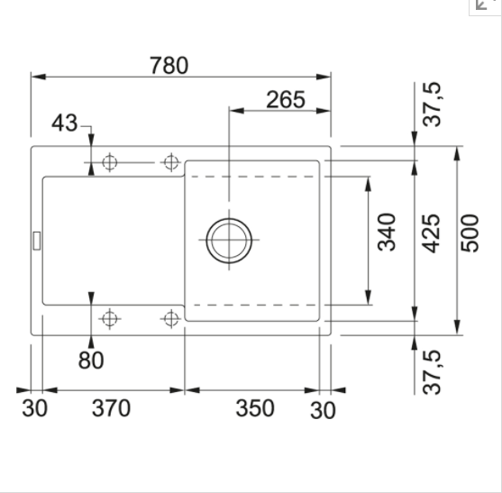 Rozměr dřezu        425.00 mm