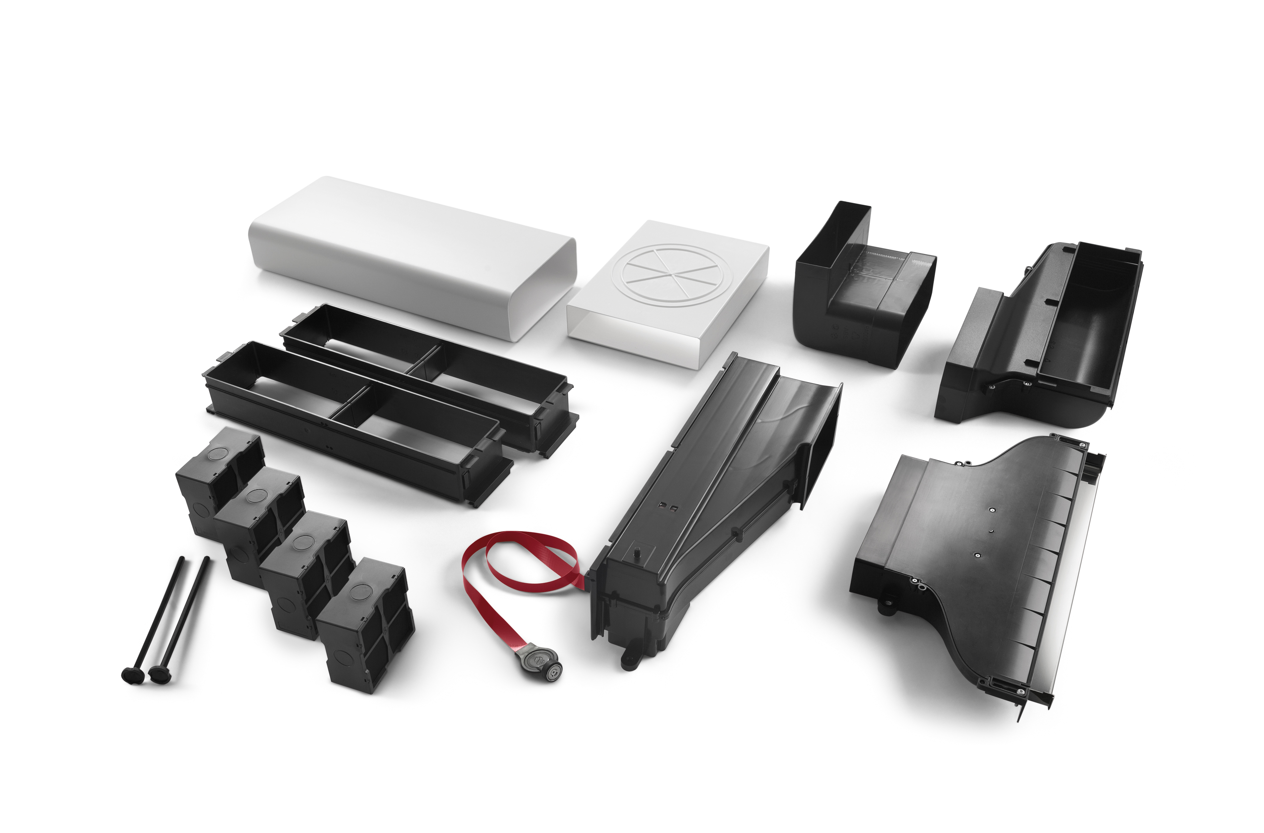 Sada obsahuje speciální díl pro umístění uhlíkových filtrů, potrubí, vyústění do soklu a   keramické uhlíkové filtry