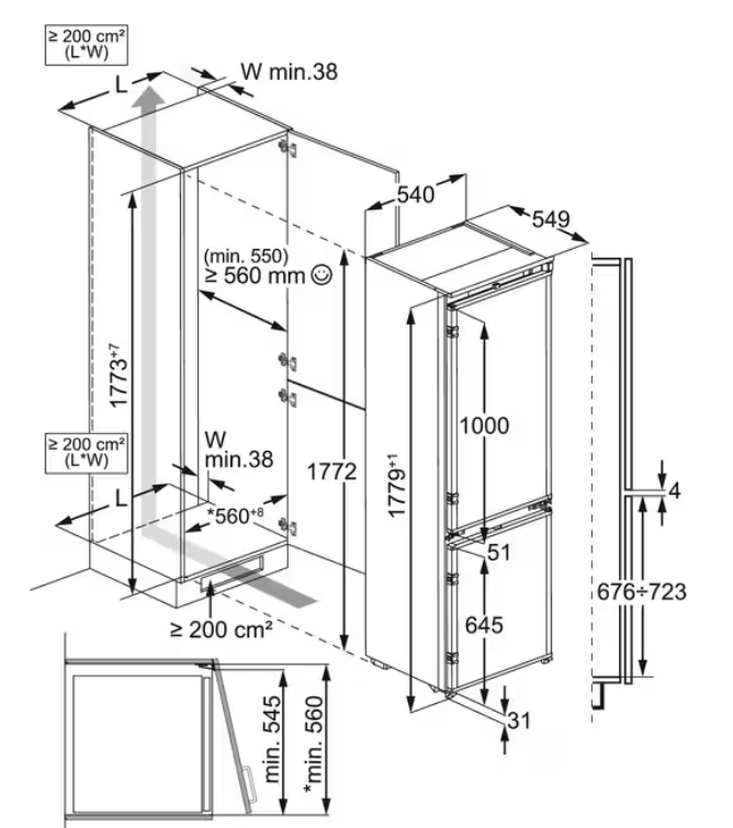 Vestavné rozměry (mm): 1780 x 560 x 550