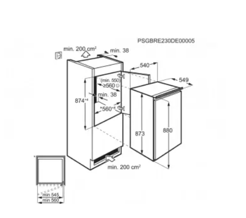 Vestavné rozměry (mm): 880 x 560 x 550