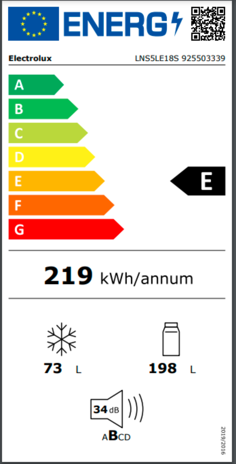 Roční spotřeba energie (v kWh/rok): 219