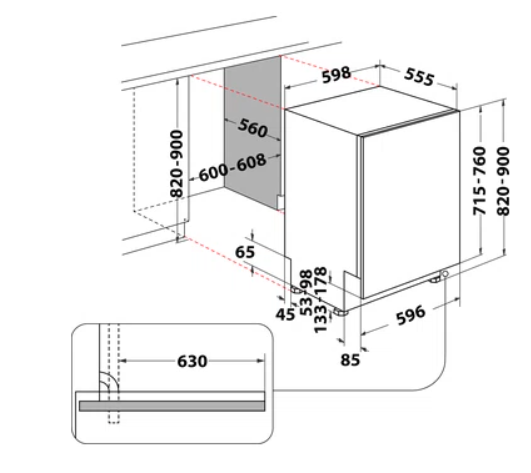 Výška pro vestavbu cm 82