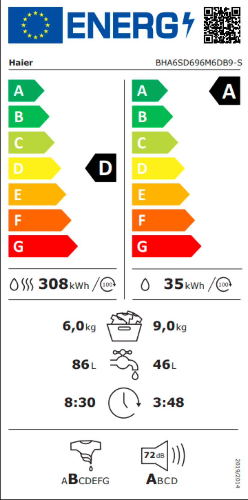 Třída energetické účinnosti praní + sušení D