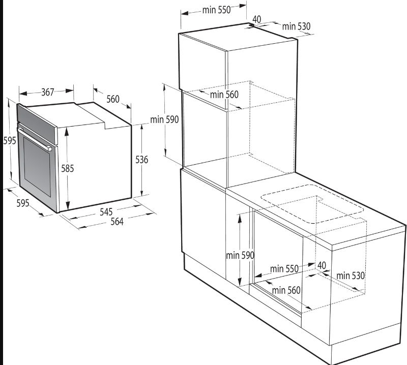 Výška pro vestavbu cm 59